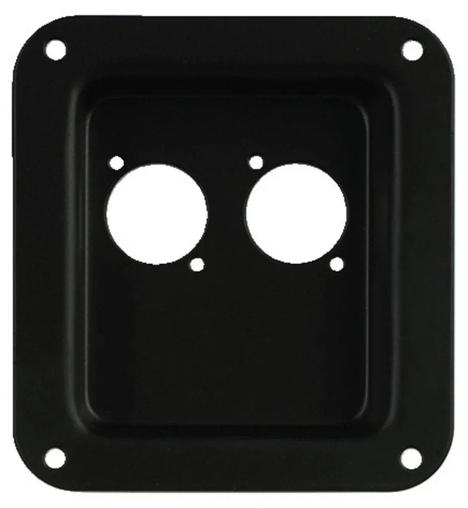 Terminals für den PA-Boxenbau und universellen Einsatz, versenkter Einbau, bestückt oder als Einbauschalen mit Bohrungen, stabile Stahlausführung, schwarz lackiert. PA-Terminal