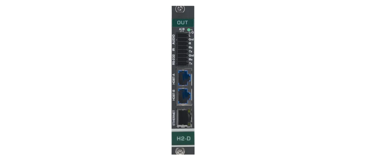 DTAxrD2-OUT2-F34 – 2-Kanal 4K HDR HDBaseT Ausgangskarte mit analogem Ton und erweiterter Reichweite