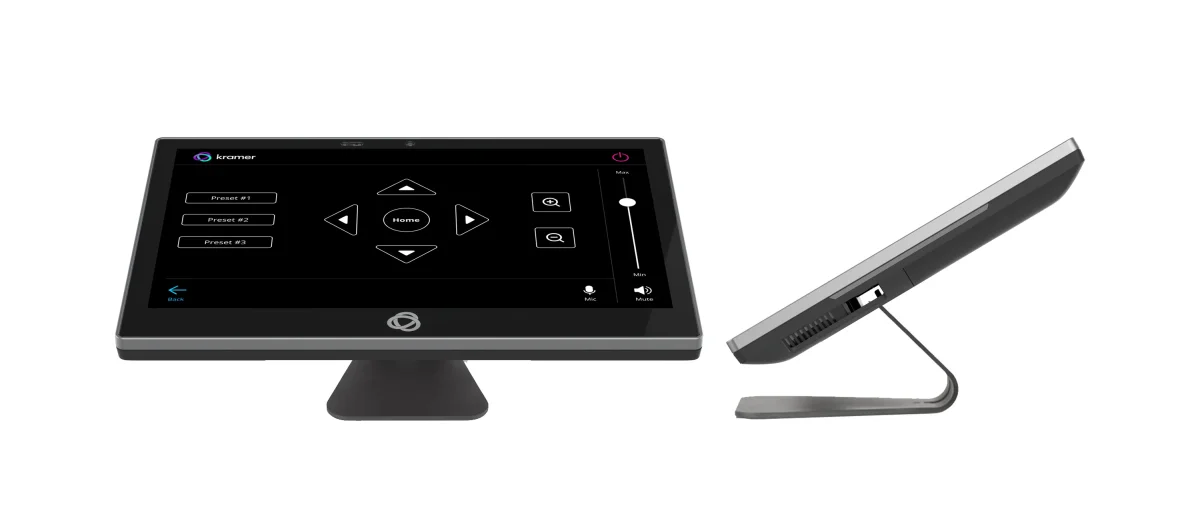 KT−2015 is a new powerful, 15−inch, IPS, multi−touch, touch panel with 1920x1080 resolution. Elegantly designed for decorative room integration, this portable touch panel can be deployed either on a tabletop or wall. KT−2015, with the latest Android 11, supports wired PoE (Power over Ethernet) and advanced Wi−Fi connectivity options. The touch panel has a built−in speaker and camera and comes either with a tabletop or a wall mount. The touch panel is easy to assemble, using elegant wiring, secured mounting, reliable operation and flexible deployment. KT−2015 is a touch panel that is ideal for any 24/7 Kramer−supported commercial AV or control application and features a user−friendly, fully customizable graphical user interface configured by Kramer software.