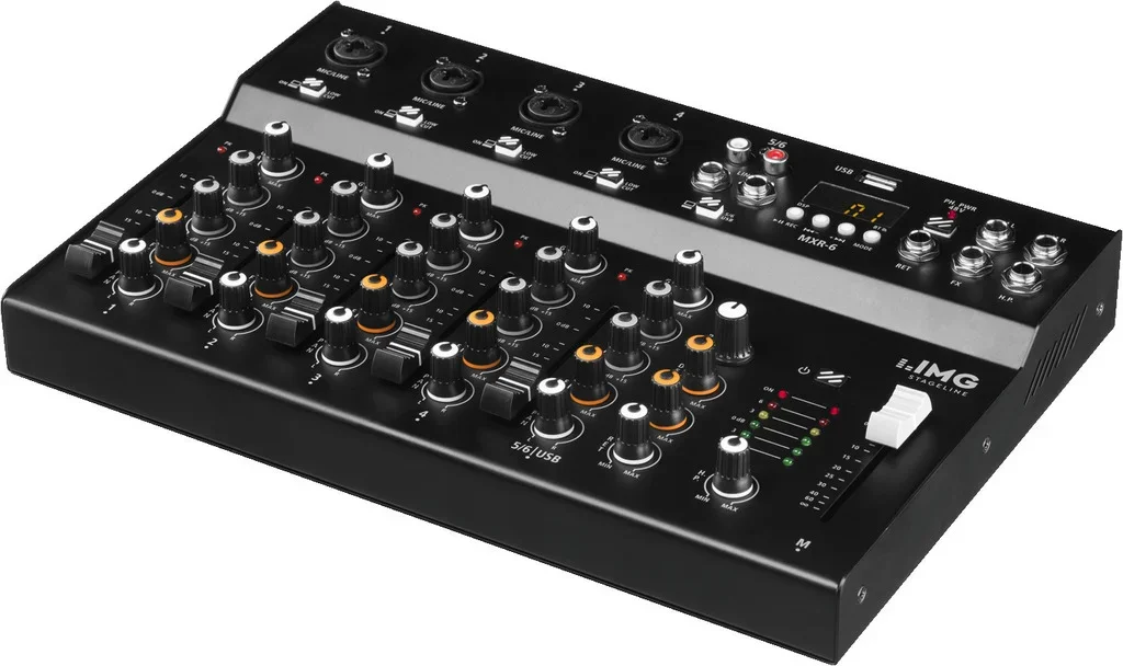 6-Kanal-Audio-Mischpult mit DSP-Effekteinheit, integriertem MP3-Spieler und Bluetooth-Empfänger
