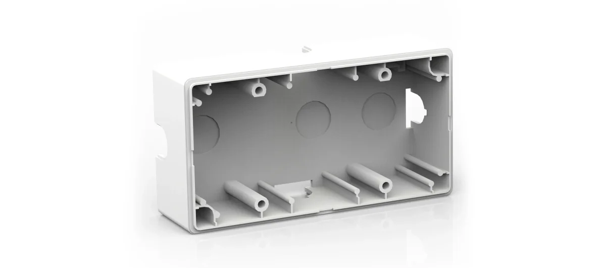 OWB−2G/M ist eine polarweiße Kunststoffbox für die Installation einer einzelnen 2−fachen europäischen Wandplatte. Die Box wird für Anwendungen, bei denen eine Installation in der Wand nicht möglich ist, an der Wand montiert. Verwenden Sie diese Box zum Installieren der RC−76M und RC−712M, die in diese Box passen.