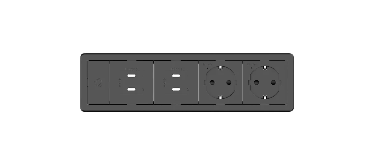 T-IN4-REC1(B) – Table In-Surface, Baseline, Black Rectangle, 4 modules. Includes – Black frame + Black locking device