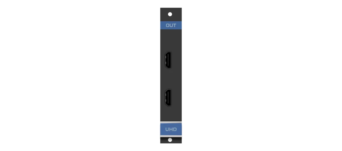 UHD−OUT2−F16 ist eine zweikanalige 4K @60 Hz (4:2:0) HDMI Ausgangskarte für den modularen Multi−Format Digital−Matrixschalter VS−1616D. UHD−OUT2−F16 gibt zwei HDMI−Signale aus dem Gehäuse aus.