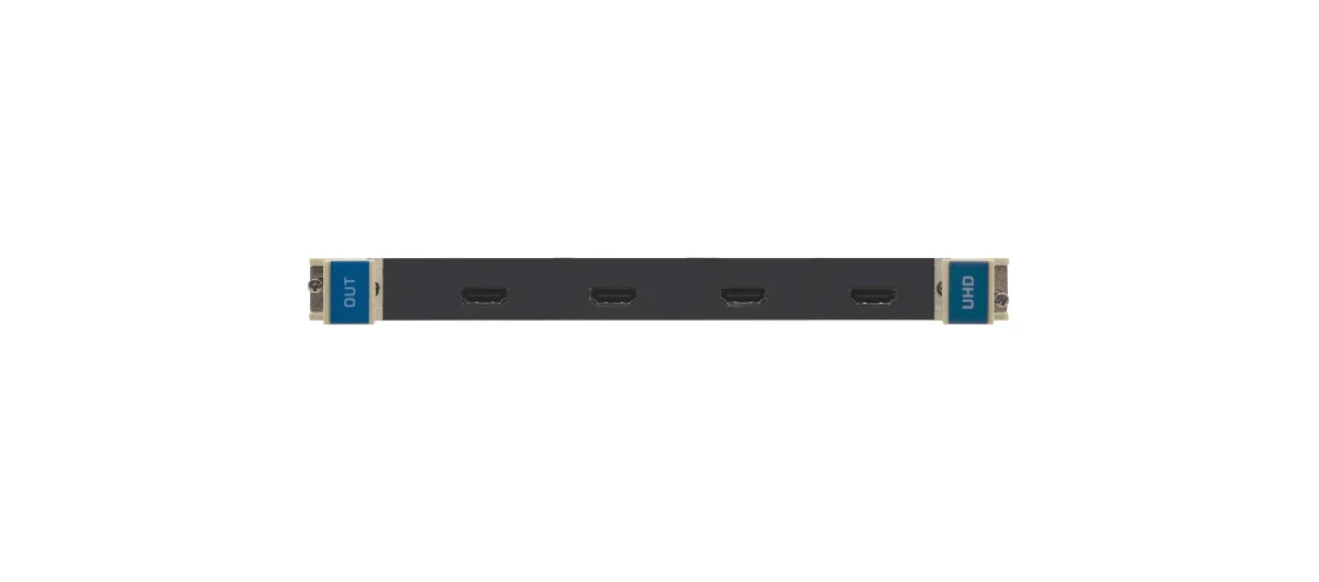UHD−OUT4−F32 ist eine 4−kanalige 4K@60Hz (4:2:0) HDMI−Ausgangskarte für den modularen Multi−Format−Matrix−Umschalter VS−3232DN−EM. UHD−OUT4−F32 stellt vier HDMI−Signale zur verfügung.