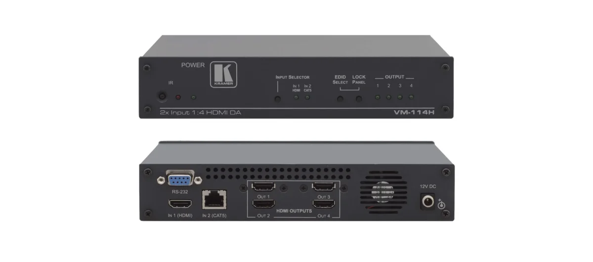 VM-114H – 2x1:4 HDMI/Twisted Pair (DGKat) Umschalter und HDMI-Verteilverstärker mit RS-232 und IR