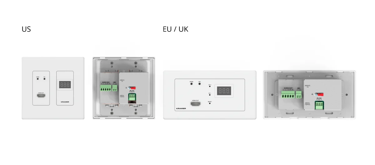 WP-DEC7/US-D(W) – High−performance, highly scalable, AVoIP Wall Plate Decoder for 4K over 1G Network, with white Decora® Design Frame Sets, Typical Power Consumption: 3.94W